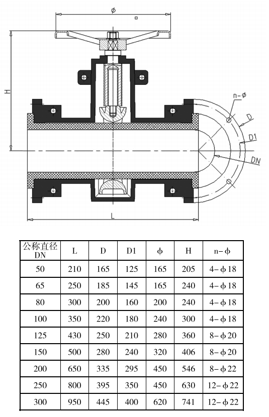 当顺转手轮时,使大小阀杆同时带动上下闸板,压缩管套,进行关闭,反转即行开启,这样,闸板在导柱之间上下往复完成阀门开闭工作。另外,因橡胶管套承力,因此在开关时,操作人员旋转手轮时只要感到适量抵触,均已达到开闭极点,切勿尽力或多人辅助,禁用其他工具开闭。