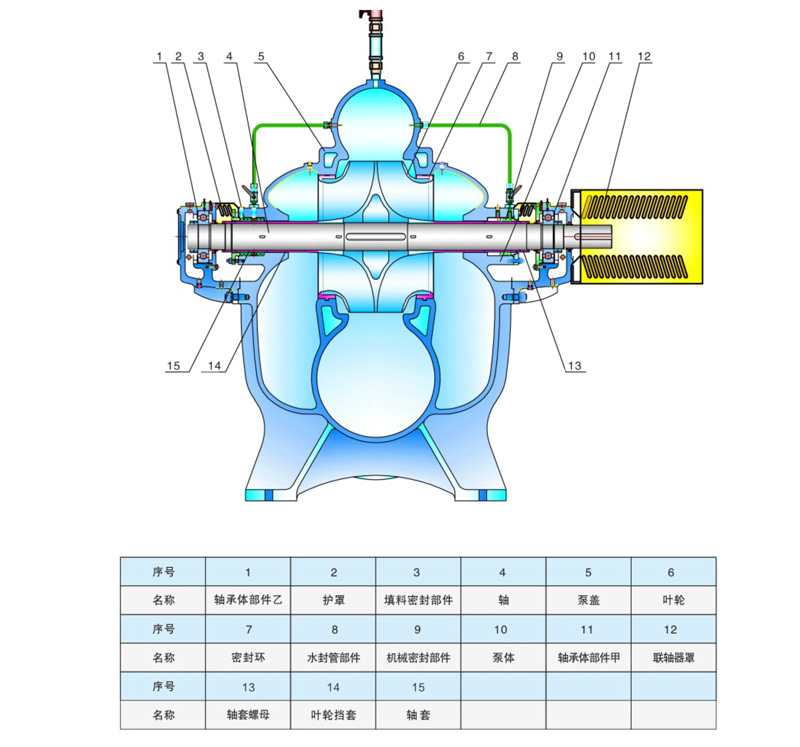 S型单级双吸中开式离心泵结构说明: